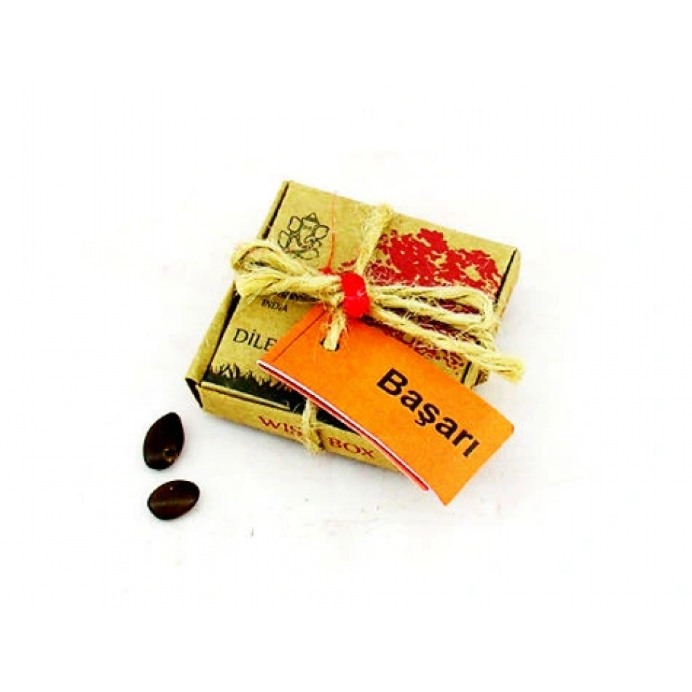 Ürün, özel kraft kutusu içerisinde olup, üzeri iple bağlıdır. Kutu ölçüsü: 4 x 4 cm.dir.