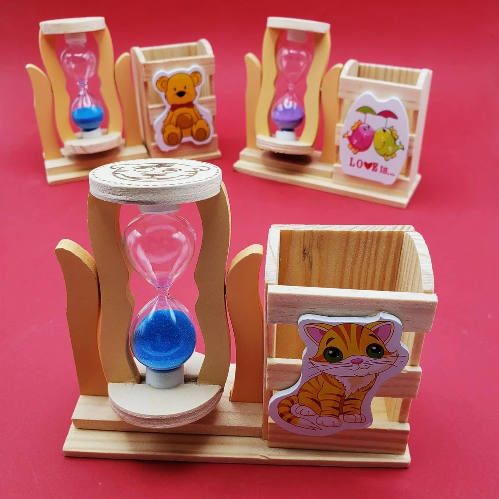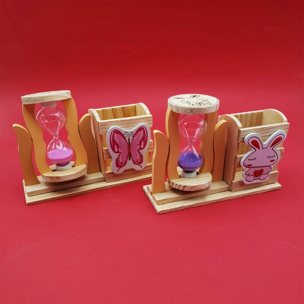 Kum Saati Kalemlik KutuluIşıklı Ahşap Altlıklı Cam Küre…