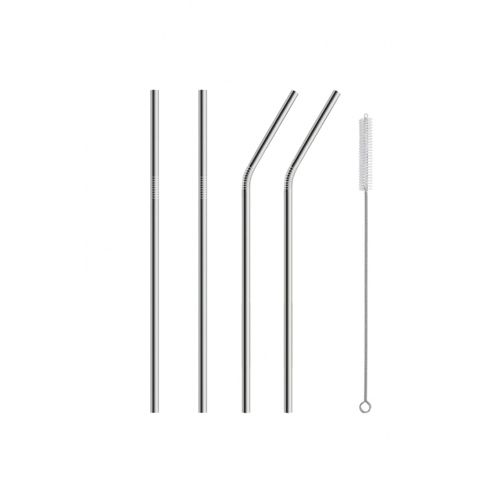 5 Parça Metal Pipet - Paslanmaz Çevre Dostu Metal Pipet Fırça Seti