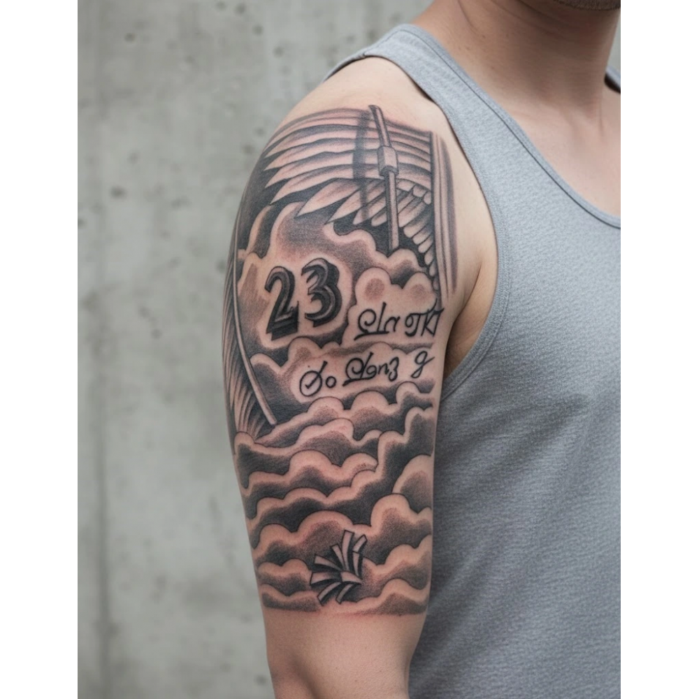 Bulutlar Melek Kanatları Geçici Dövme Şablonu Büyük Boy