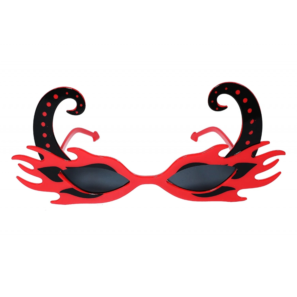 Siyah Boynuzlu Kırmızı Renk Alevli Parti Gözlüğü 21x10 cm