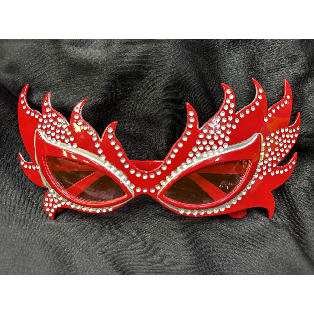 Alev formundaki çerçevesi, ışıltılı taş detayları ve özgün tasarımıyla bu gözlük; maskeli balolardan konsept partilere, gece eğlencelerinden sahne şovlarına kadar her ortamda fark oluşturur.