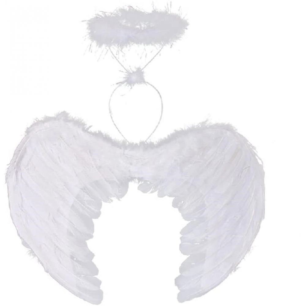 Beyaz Renkli Tüylü Bebek Melek Kanadı Ve Tacı 30x45 Cm CSM-2145