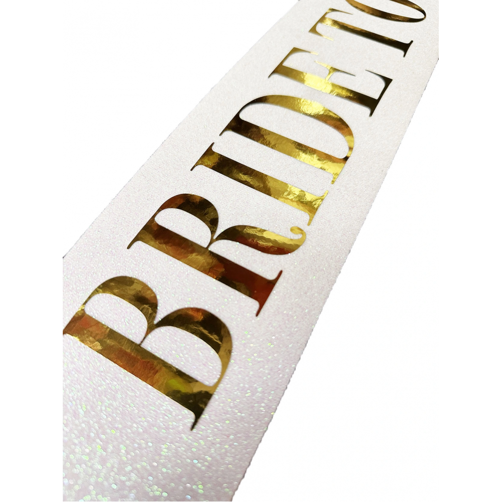 Beyaz Üzeri Altın Büyük Bride To Be Yazılı Simli Işıltılı Kuşak Kemer 10x80 cm