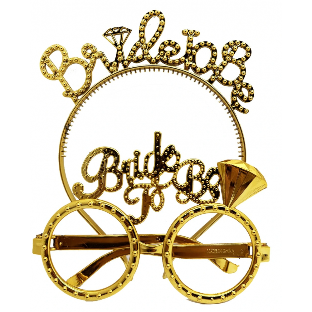 Bride To Be Yazılı Taç Ve Bride To Be Yazılı Gözlük Seti Altın Renk CSM-4668