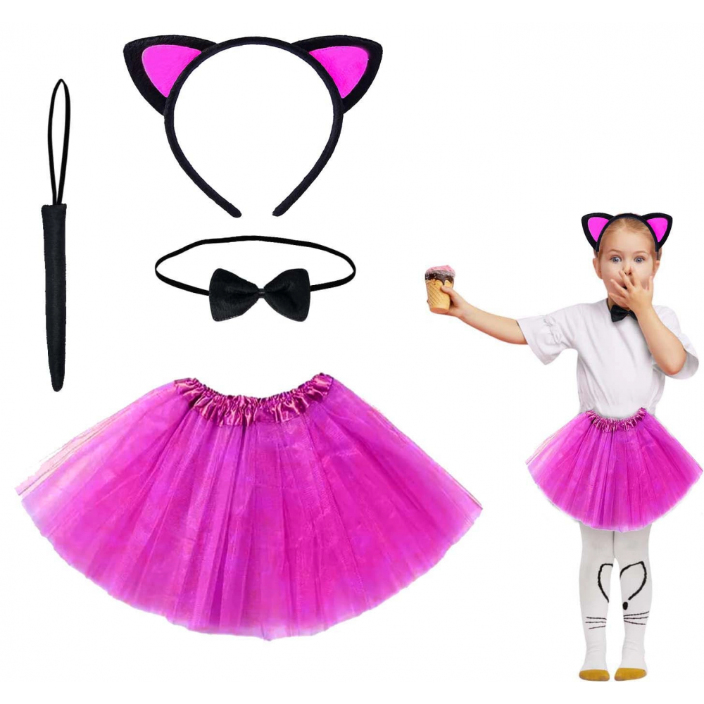 Fuşya Renk Kedi Kostüm Seti (Tütü, Taç, Papyon, Kuyruk)