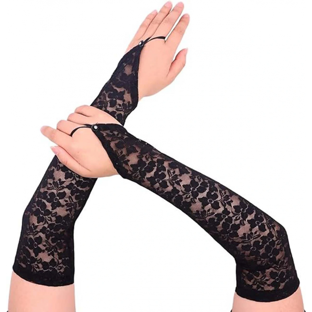 Parmak Askılı Zarif Gece Şıklığı Dantel Eldiven 40 cm