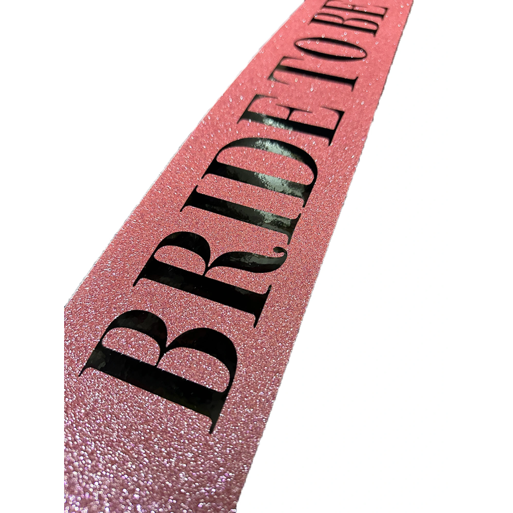 Pembe Üzeri Siyah Kalın "Bride To Be" Yazılı Simli Işıltılı Kuşak Kemer 10x80 cm