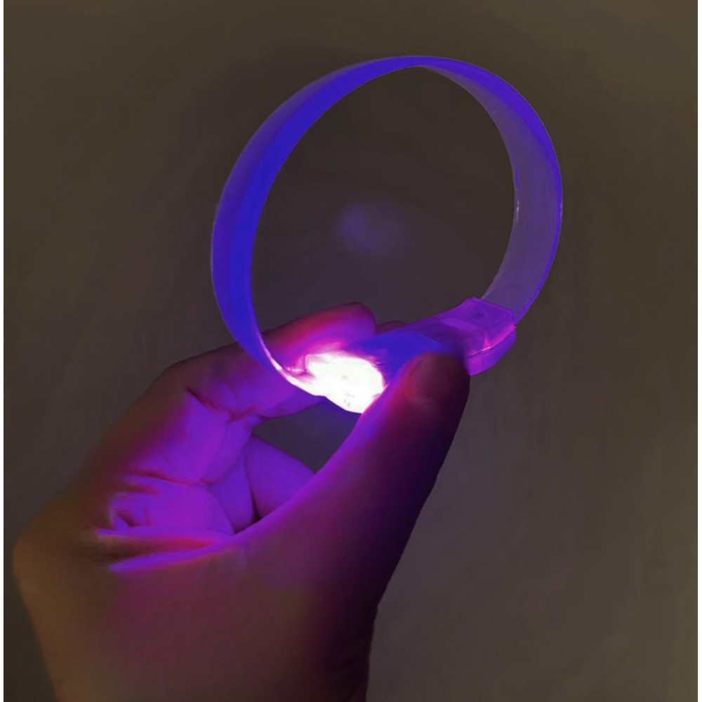 3 modlu pilli LED ışıklı esnek bileklik, mor ışığıyla parti ve konserlerin vazgeçilmez eğlence aksesuarıdır. Esnek yapısı sayesinde her bileğe uyum sağlar. Pilli çalıştığı için uzun süre kullanılabilir. 3 farklı ışık modu (yanıp sönme, hızlı flaş, sabit ışık) ile ortama enerji katar.