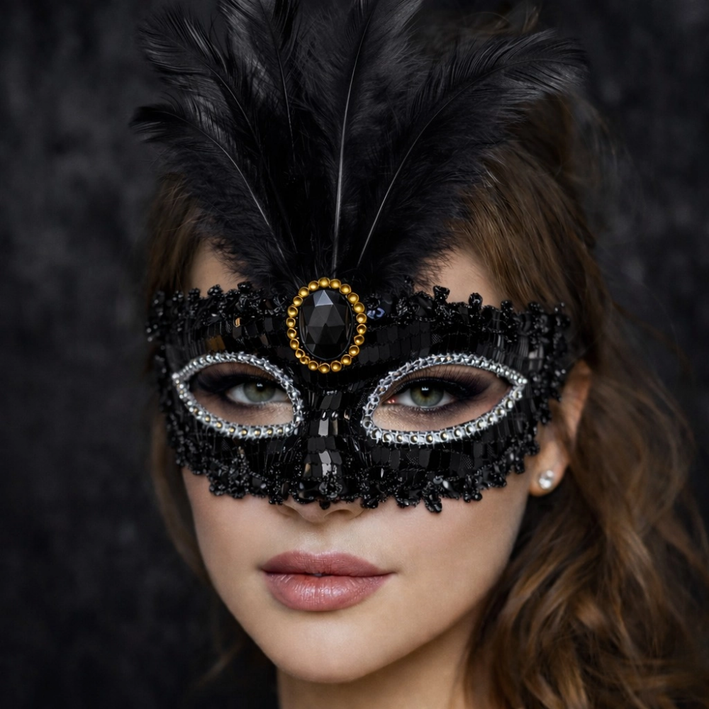Gizemli ve güçlü bir stil arayanlar için tasarlanan Siyah Tüylü Taşlı Balo Maskesi, özel davetlerde ve konsept partilerde dikkatleri üzerinize çekmenizi sağlar.
