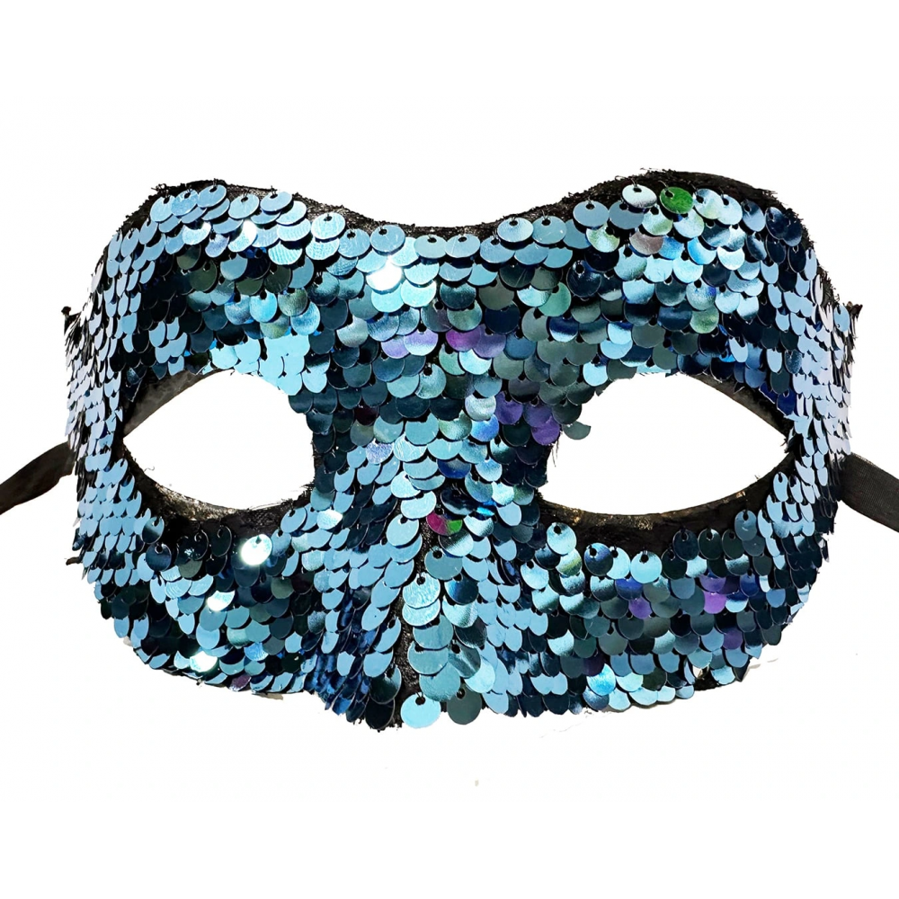 Mavi Renk Payetli Pullu Parti Maskesi Balo Venedik