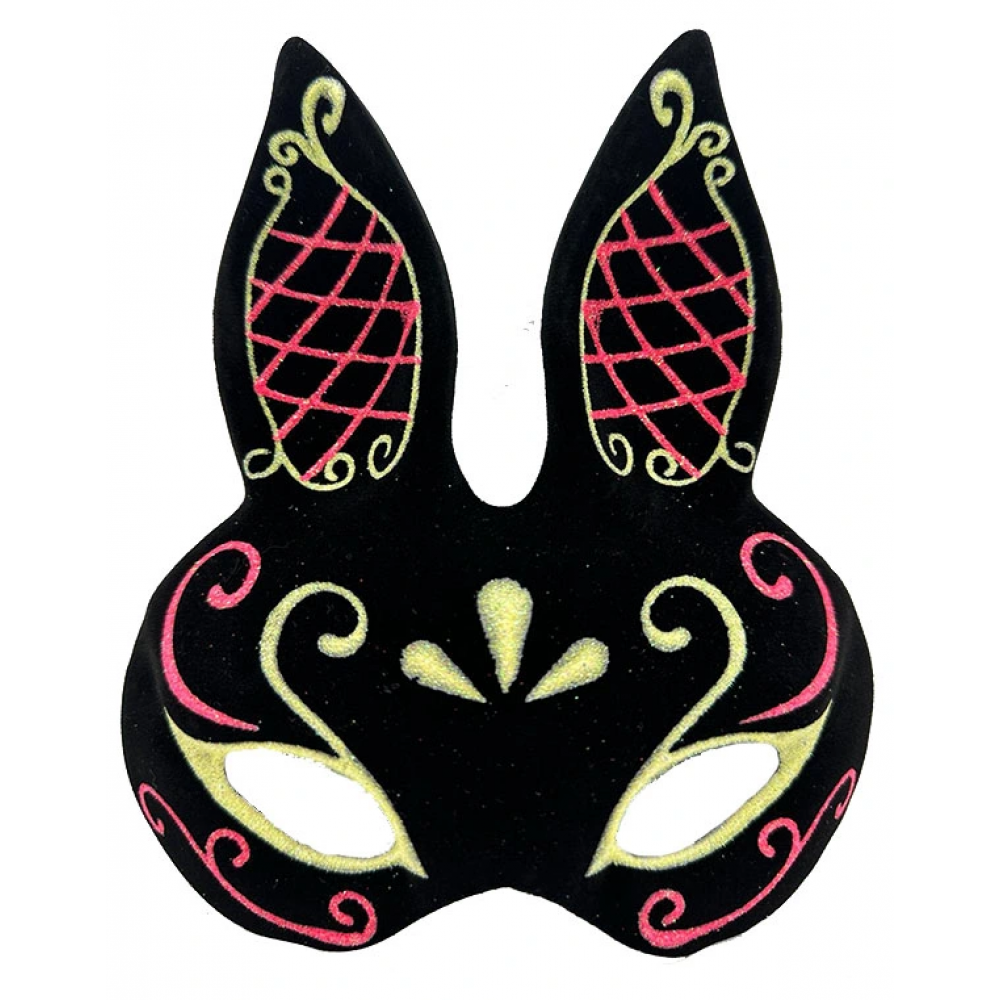 Siyah Renk Kırmızı Gold Simli Siyah Süet Kaplama Tavşan Maskesi (18x16 cm)