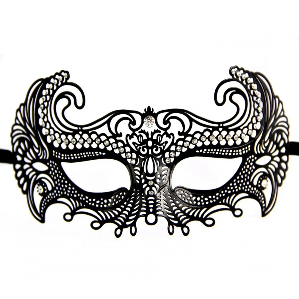 Siyah Renk Lazer Kesim Üzeri Kristal Taşlı Metal Balo Parti Venedik Maskesi