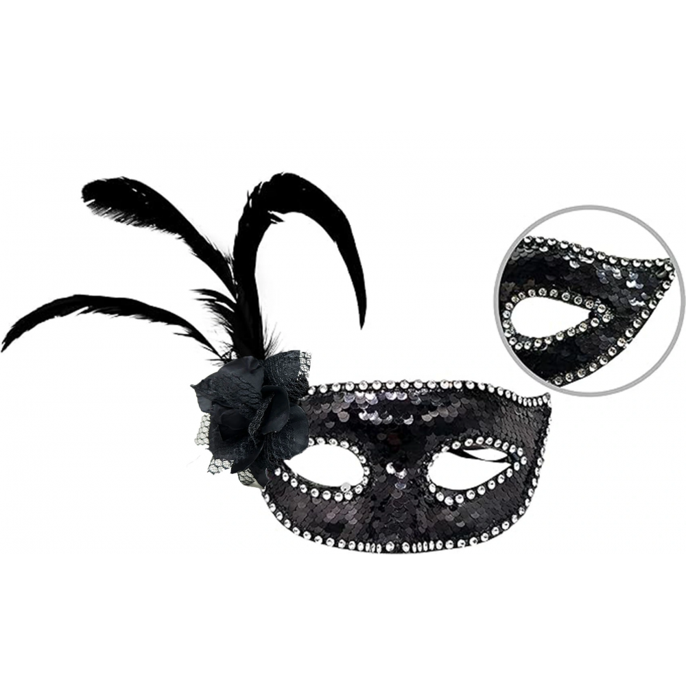 Balolar ve özel günler için mükemmel bir aksesuar olan Siyah Pullu Maske ile göz kamaştırın!