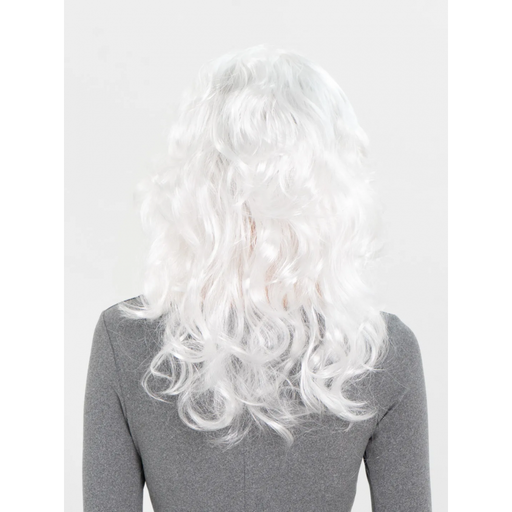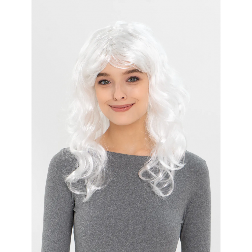 Beyaz Renk Dalgalı Uzun Parti Peruğu