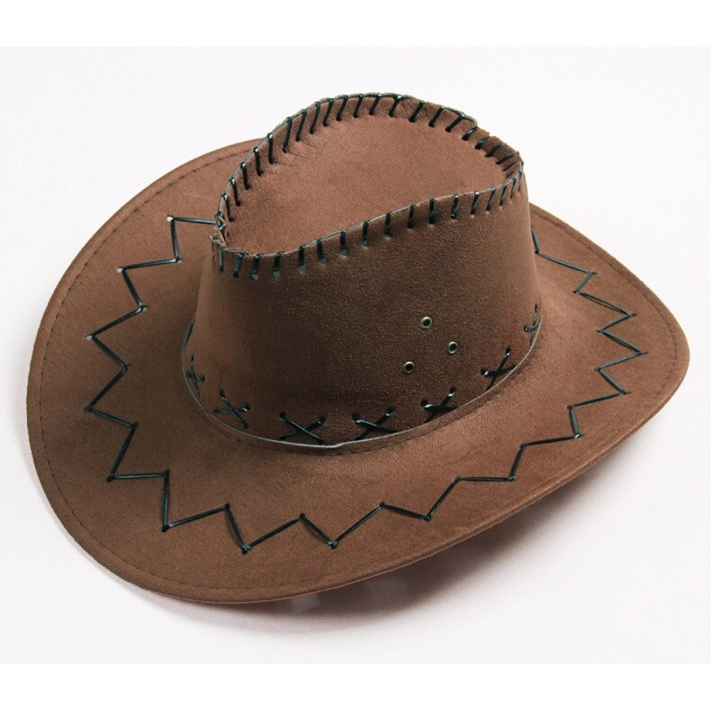 Bağcıklı Çocuk Boy Nubuk Süet Kovboy Şapkası Koyu Kahve Renk CSM-3413