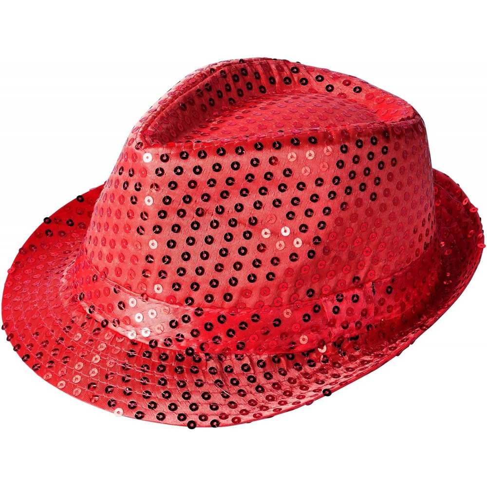 Kırmızı Gold Payetli Fötr Şapka – Işıltınızı Yansıtın!