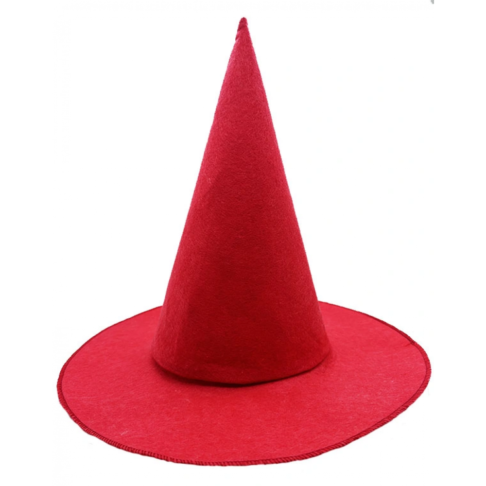 Kırmızı Renk Keçe Cadı Şapkası Yetişkin Çocuk Uyumlu 35x38 Cm CSM-4330