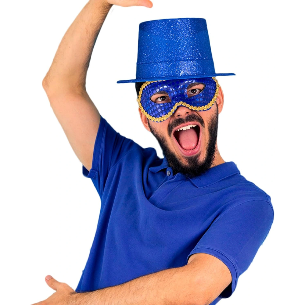 Mavi Simli Fötr Şapka – Göz Alıcı Parlaklıkla Partilerin Yıldızı!