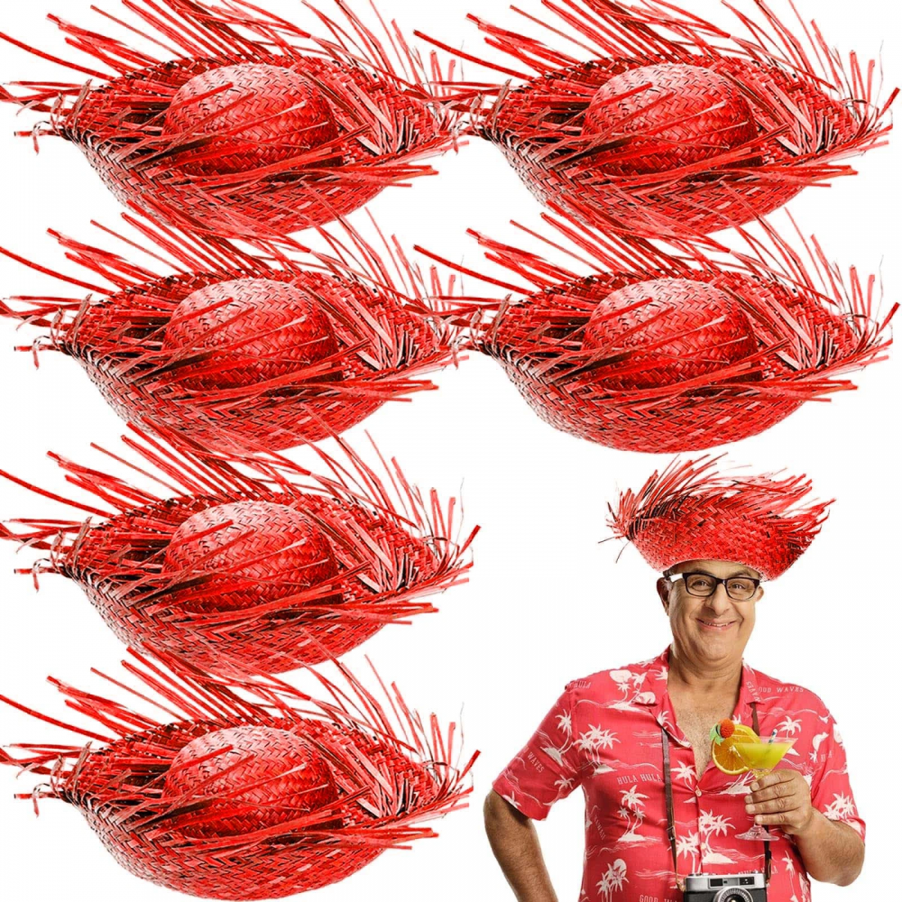 Tropikal Parti Kırmızı Hasır Hawaii Şapkası 13x36 cm