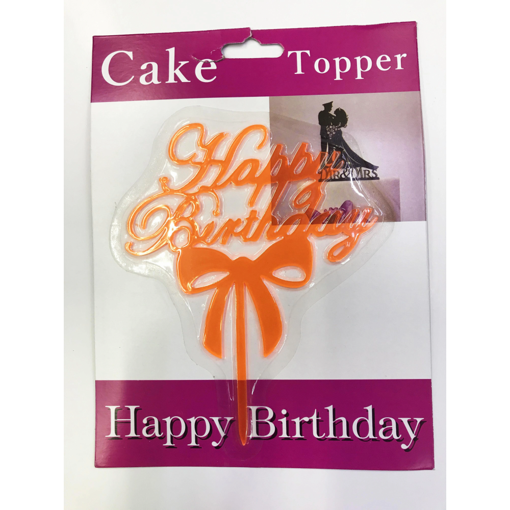 Happy Birthday Yazılı Fiyonklu Pasta Kek Çubuğu Turuncu Renk CSM-2261