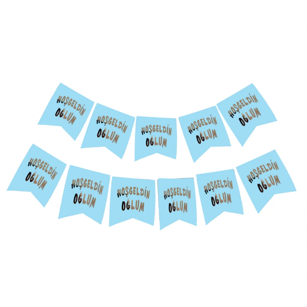 Hoşgeldin Oğlum Yazılı Mavi Üzeri Gümüş Yeni Doğan Bebek Doğum Süsü Afiş Bayrak Flama