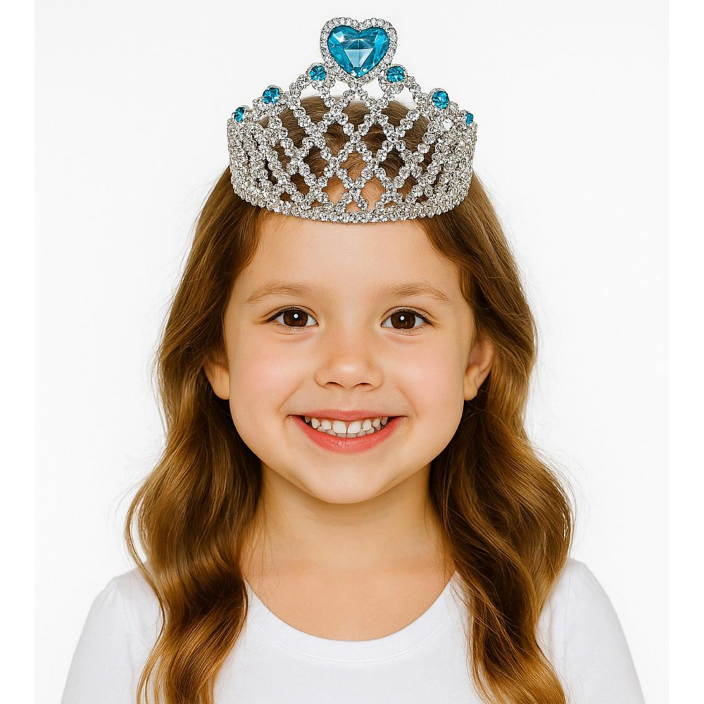 Bu taç, gümüş renginde ve mavi kalp süslemesi ile zarif ve modern bir tasarıma sahiptir. Taçtaki parıldayan taşlar ise masalsı bir atmosfer yaratarak küçük prensesinizin göz kamaştırmasını sağlayacaktır.