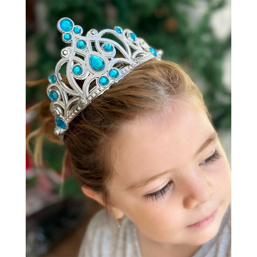 Bu zarif taç, ışıltılı mavi taşlarla süslenmiş ve zarif bir görünüme sahiptir. Taçtaki mavi taşlar, Elsa'nın buz büyülerini temsil ederek masalsı bir atmosfer yaratır.