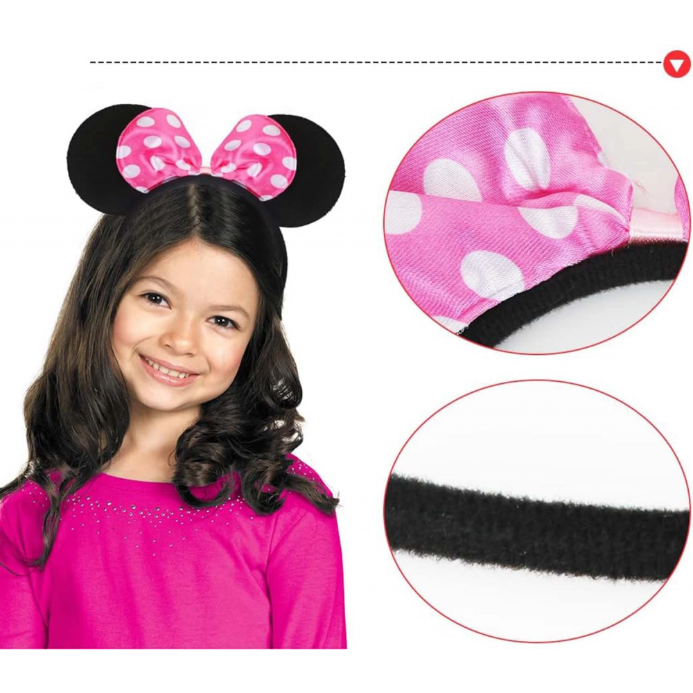 Bu özel aksesuar, yumuşak siyah kulakları ve ikonik Minnie Mouse tarzını tamamlayan pembe, beyaz puantiyeli fiyonku ile dikkat çekiyor. Hem günlük kullanımda hem de özel etkinliklerde eğlenceli bir dokunuş katmak için ideal.