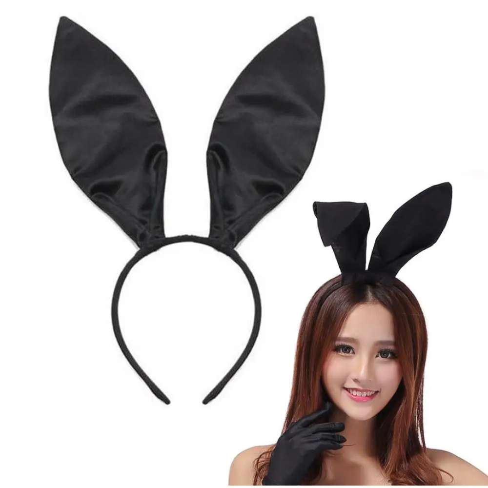 Siyah Renk Saten Kaplama Şekil Verilebilir Tavşan Kulak Taç
