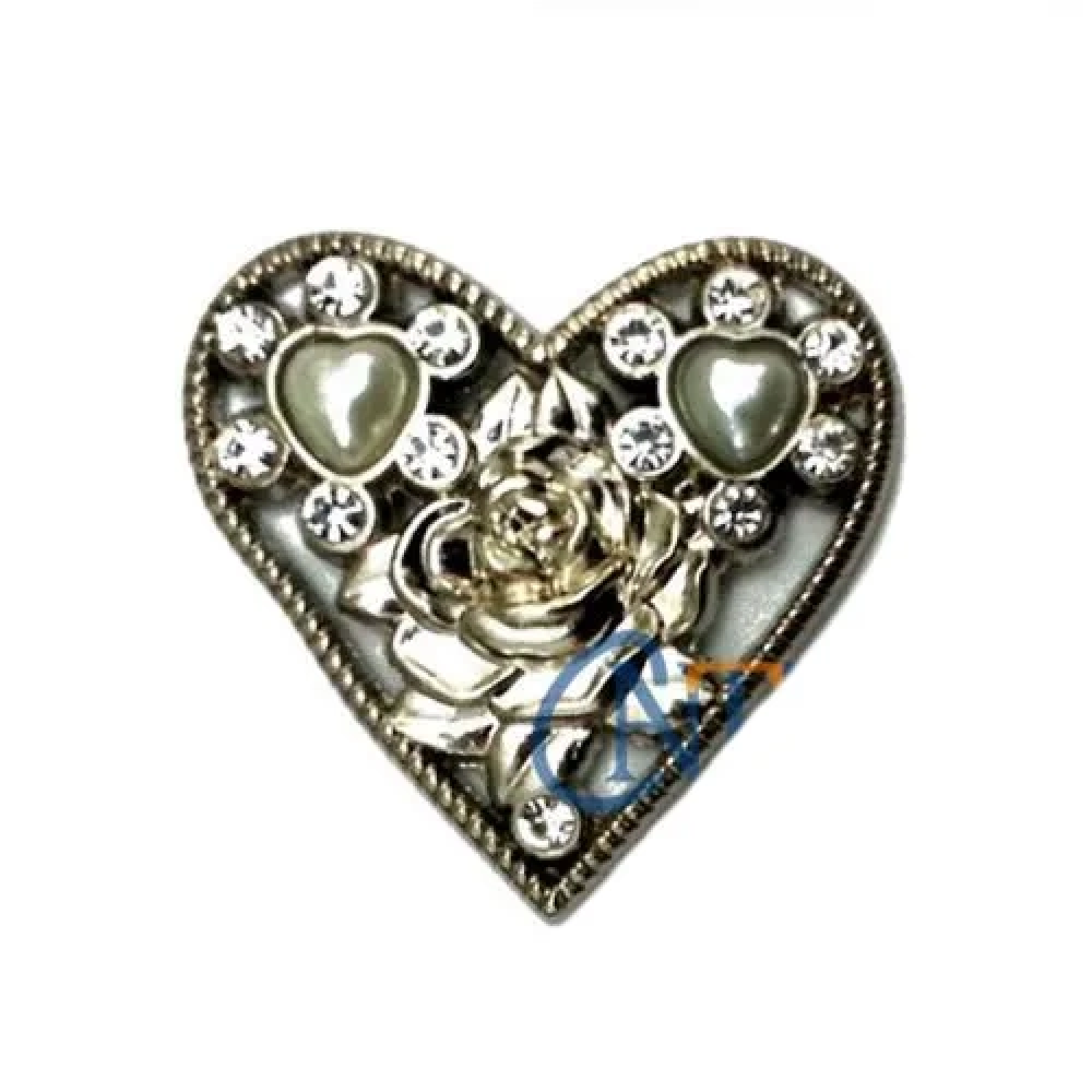 Taşlı Kalp Broş, Kutu, Sandık Süsü - Nikel kaplama ve taş detaylarıyla şıklık kazandıran bu broş, tekli olarak sunulur. Kalp şeklindeki tasarımı, hem dekoratif süslemeler hem de hediye ambalajlarında estetik bir seçenek sunar. Parlak taşlar ve nikel kaplama, broşun zarif ve modern görünmesini sağlar.