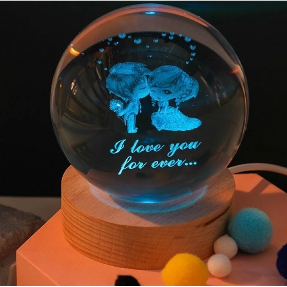 Dekoratif Öpüşen Sevgili Tasarımlı Ahşap Altlıklı Işıklı Cam Küre Büyük Boy C1YSP-SST-722
